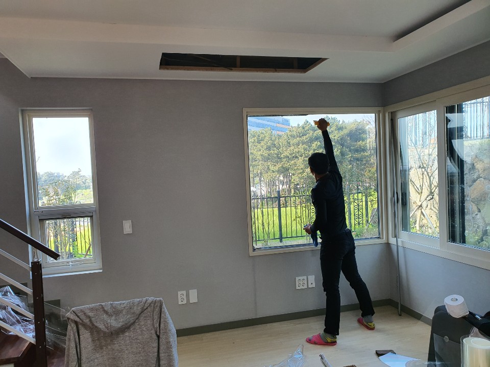 가정집이지만 고객의 직업이 경찰이다보니 방탄필름을 시공하였습니다.