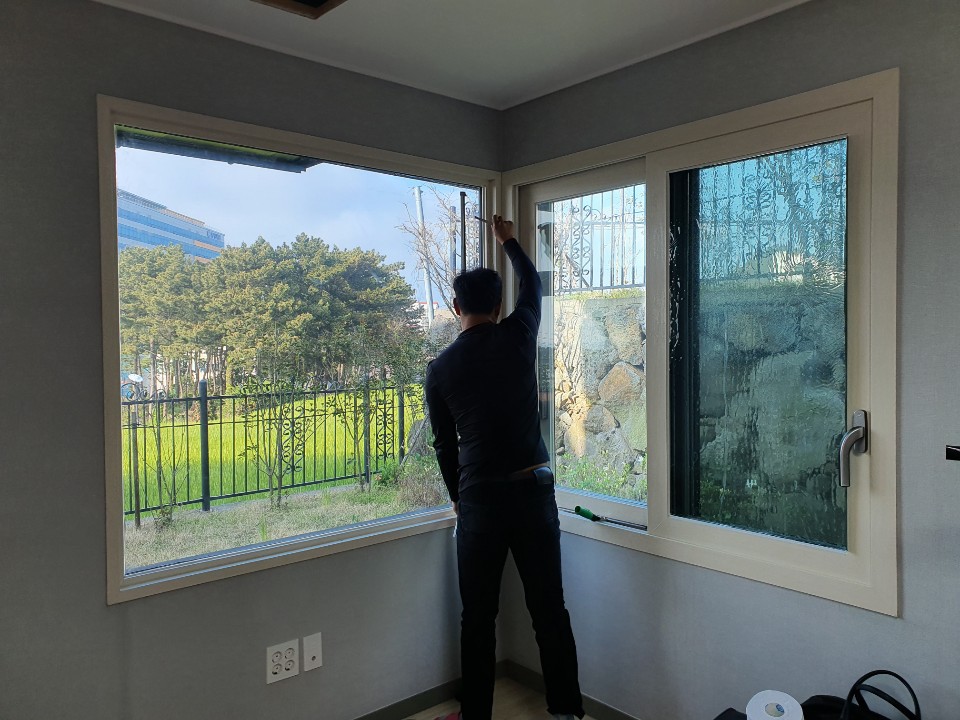 제주도의 펜트하우스 단지에 방탄필름을 시공하였습니다.