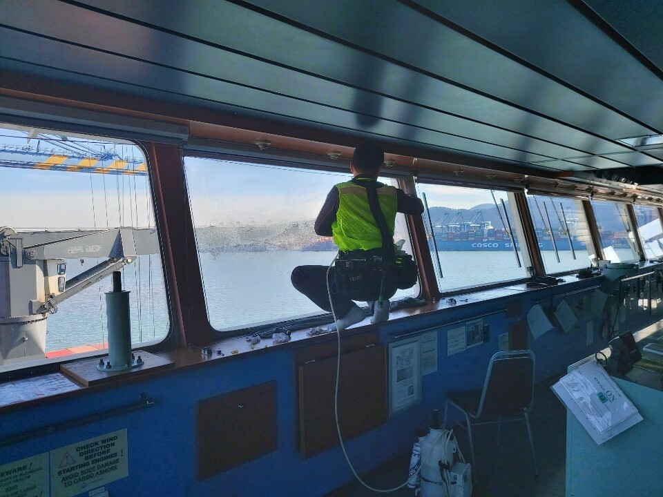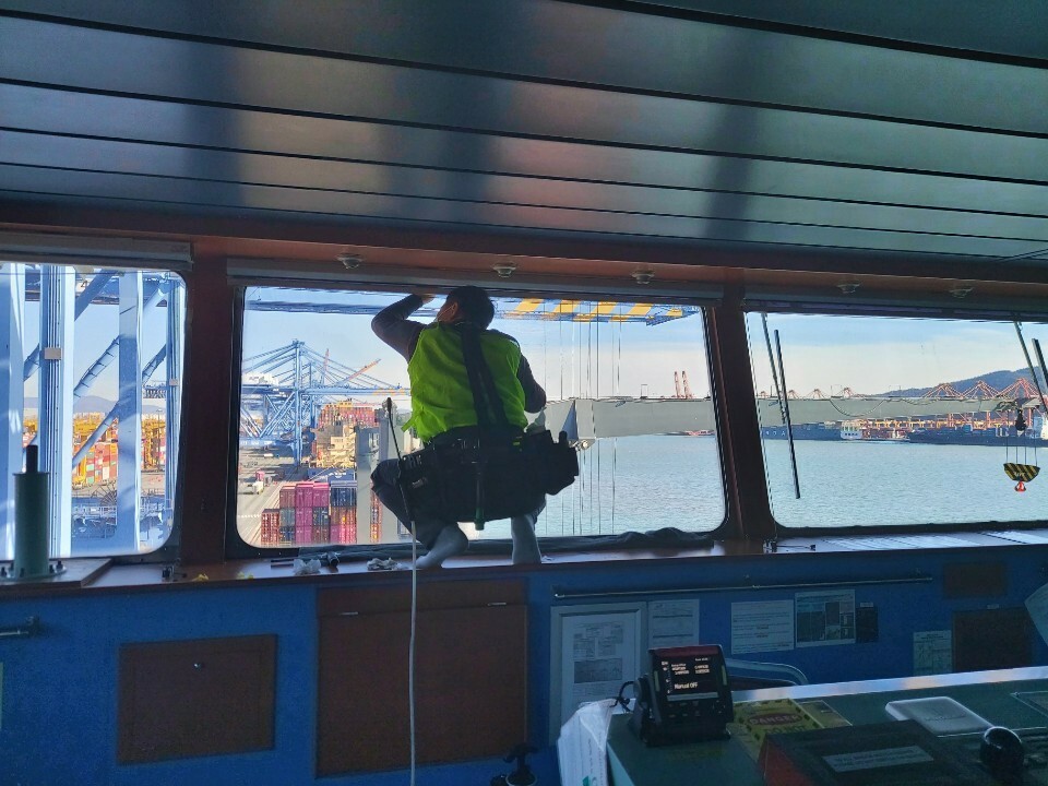 안전이 중요시되는 함선/배 같은 경우 방탄12Mil 필름으로 시공하였습니다.
