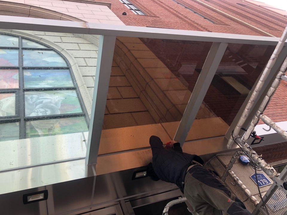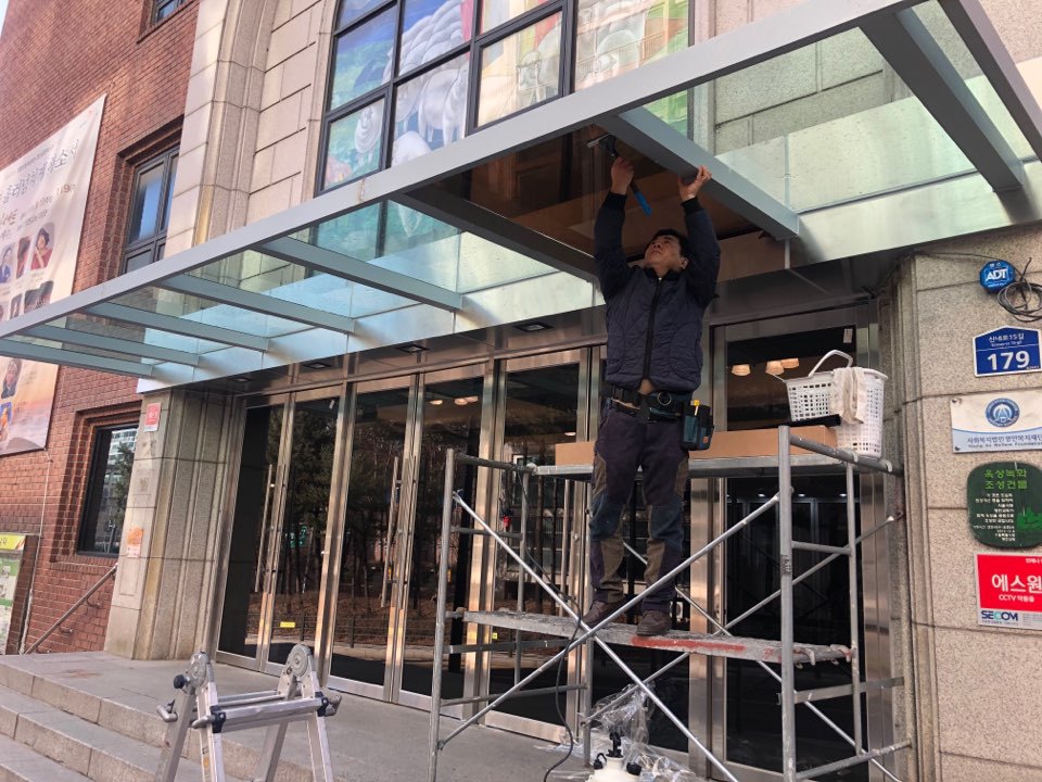 출입구 천장부분 / 방범필름과+브론즈15% 제품을 이용해 두겹으로 시공의뢰를 하셨습니다.