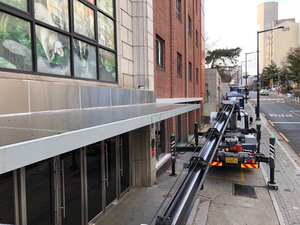 시공중 상태로 아시바를 이용해 작업을 하고있는데 손이 닿지 않아 작업에 어려움을 느끼고 스카이차를 불러 작업을 하게 되었습니다.