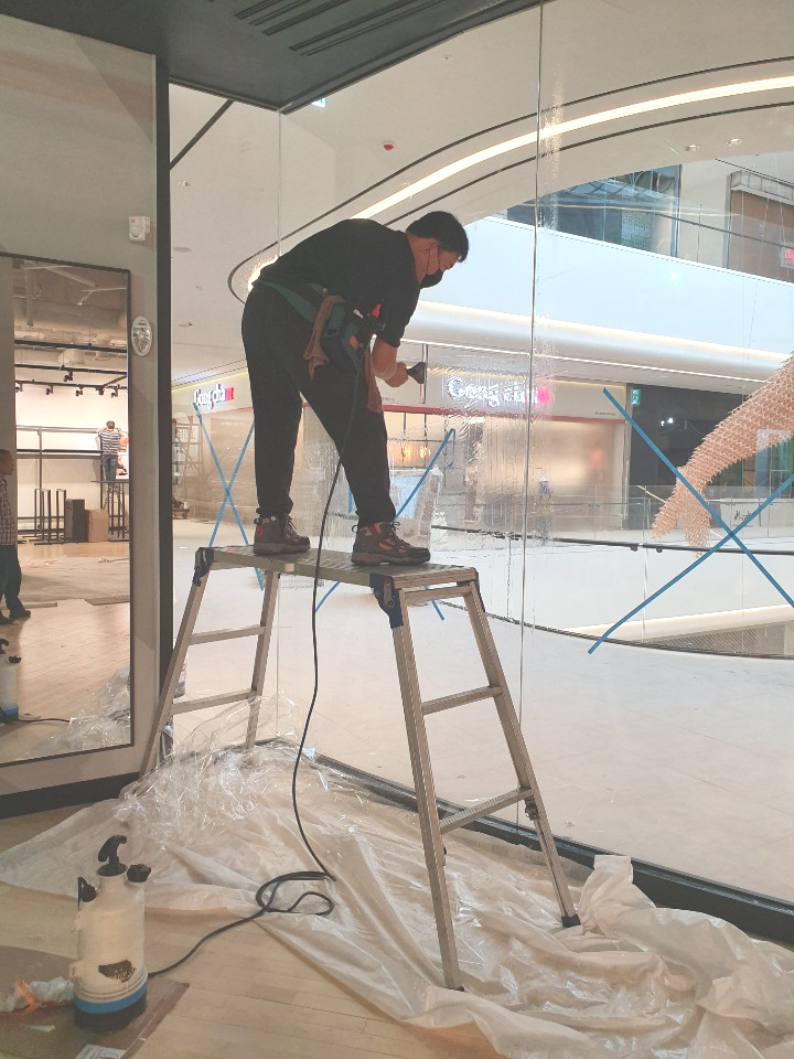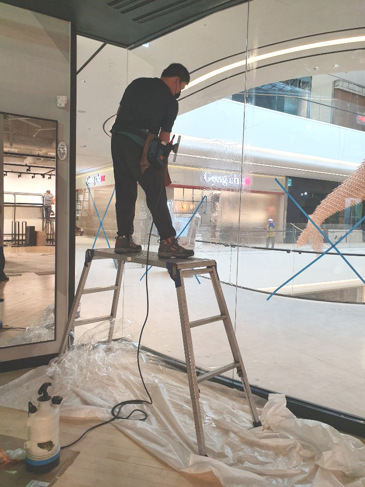 부천스타필드 시티 나이키매장 안전필름 시공입니다.