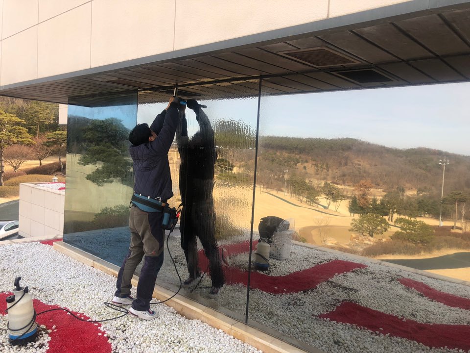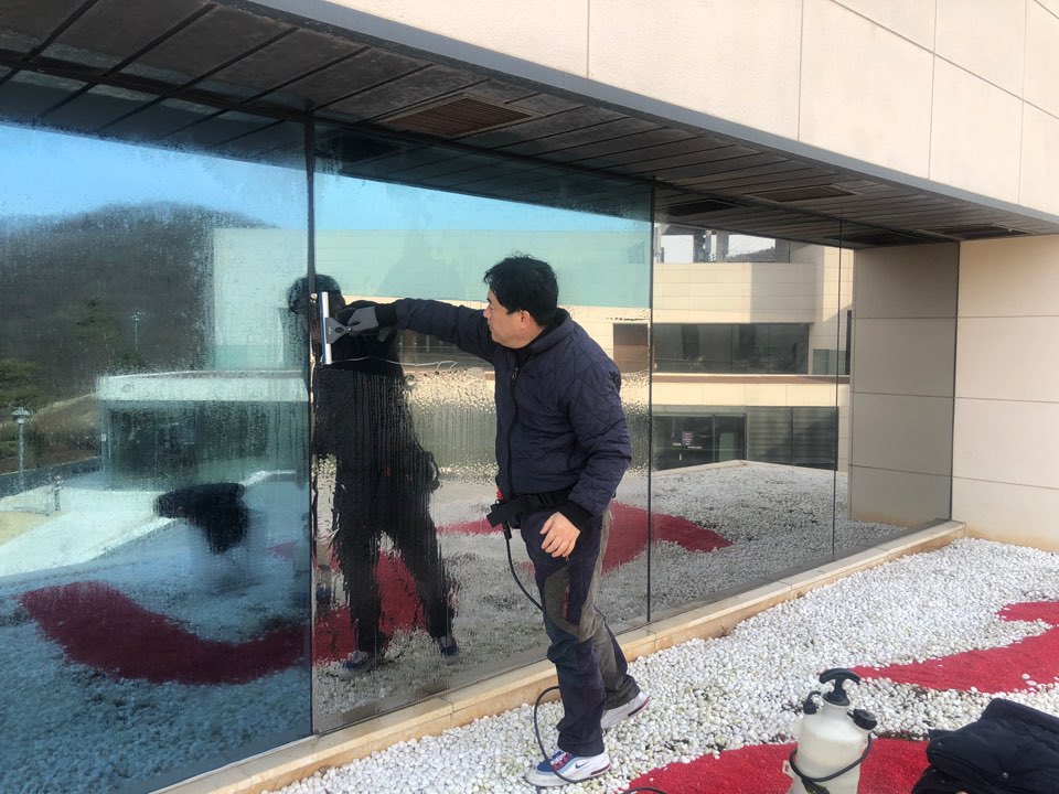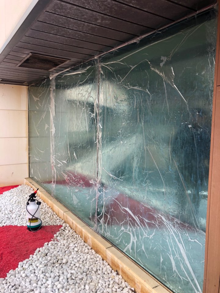 기존 외부용부착필름 제거후 > 외부시선차단필름 부착하였습니다.