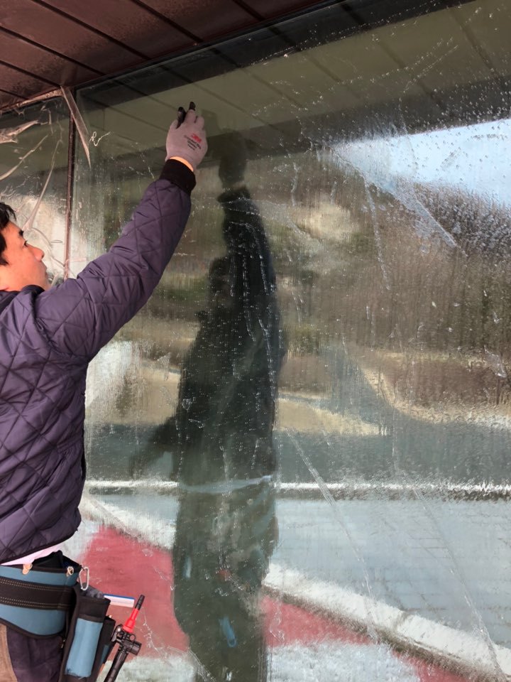 시공전 기존 부착된 필름을 제거 작업 중입니다.