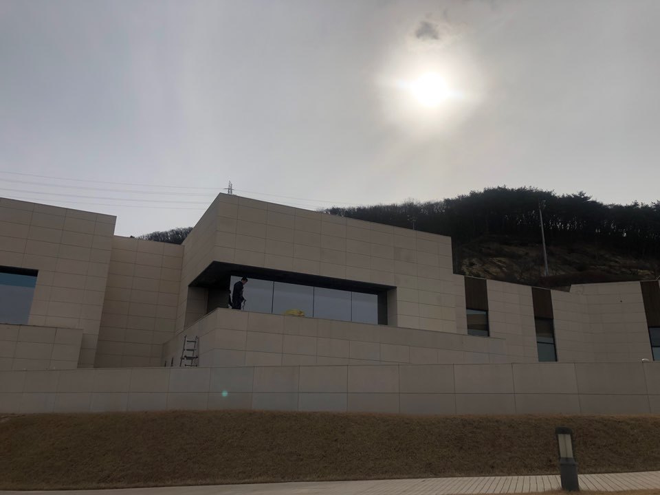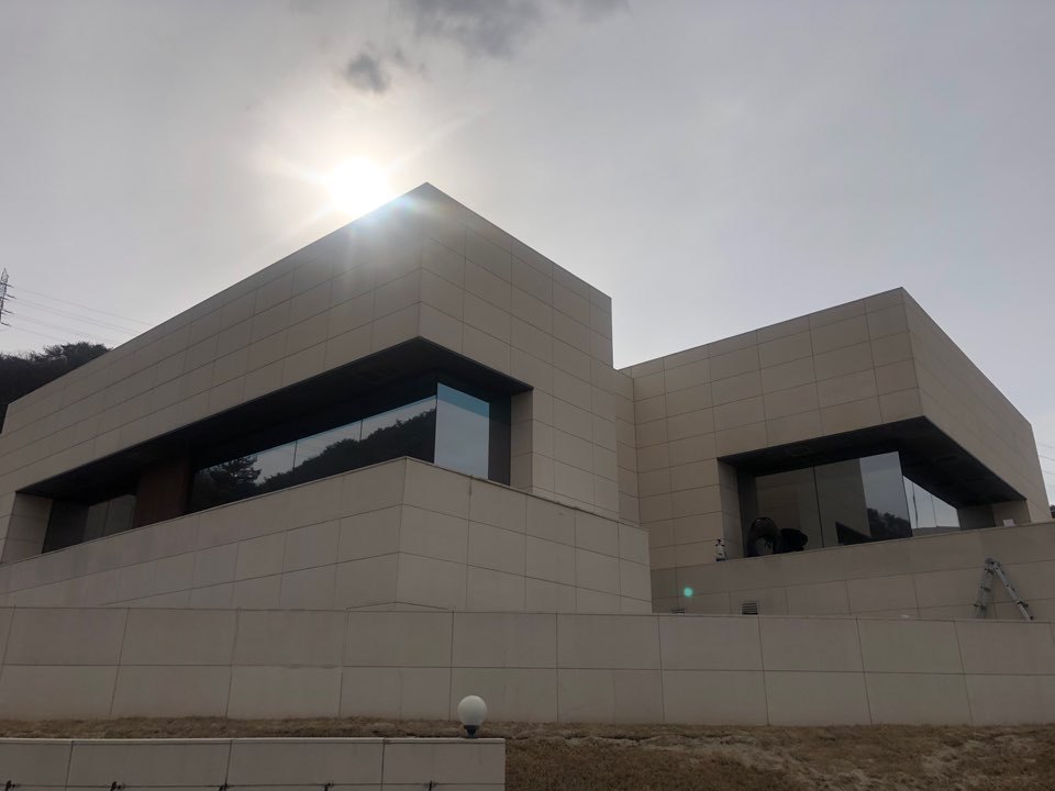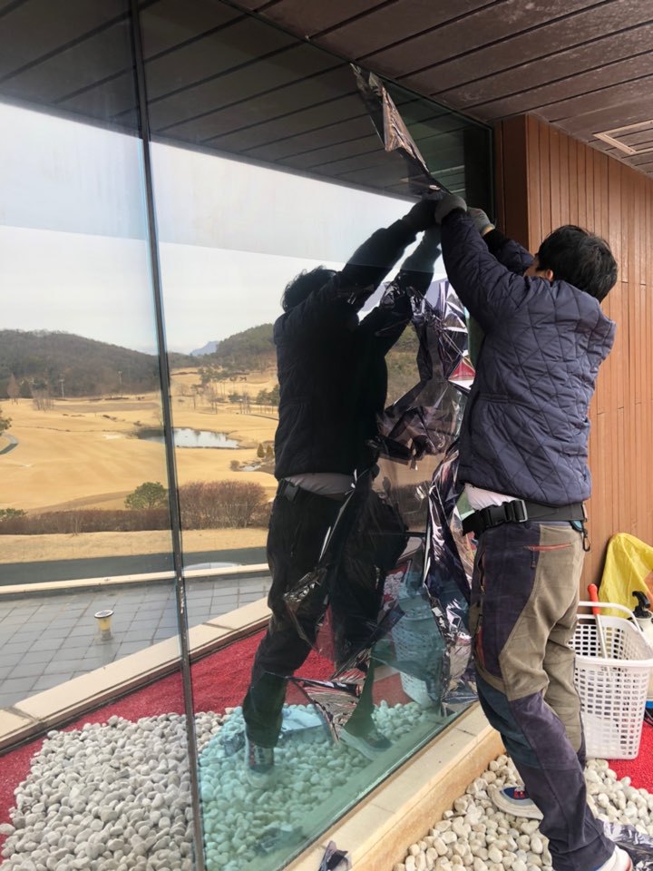 시공이 완료 되어 밖에서는 안이 보이지않고 안에서는 밖이 보이는 기능과 높은 차단율의 단열율 까지