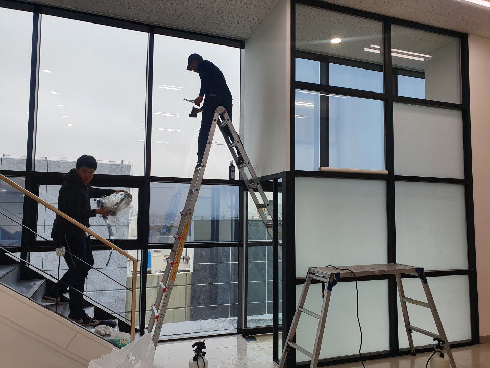실버15 외부시선차단필름 시공중입니다.