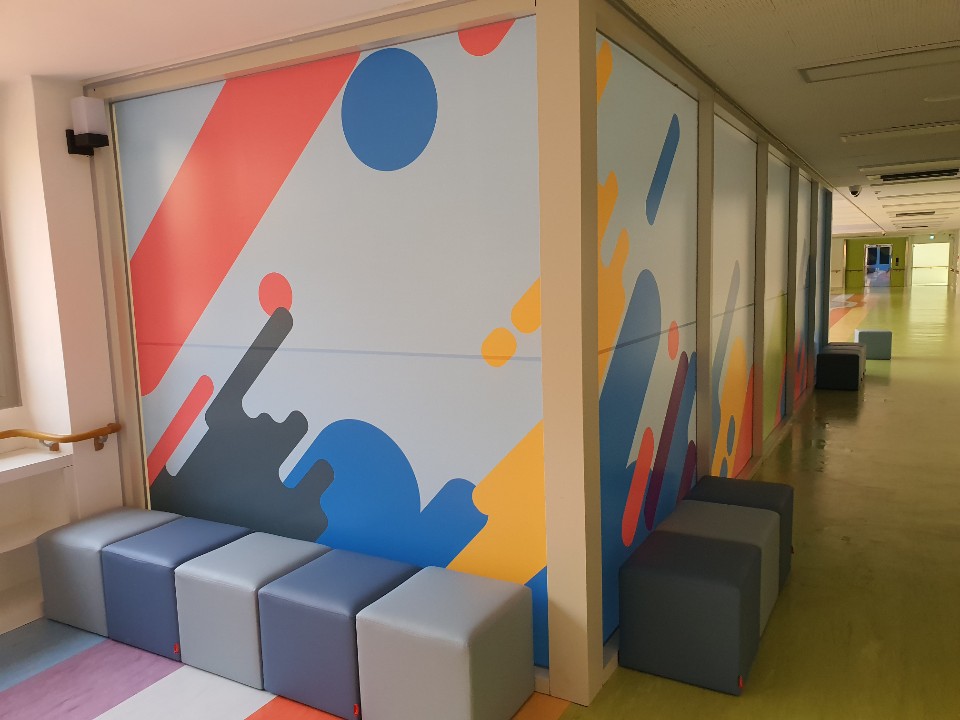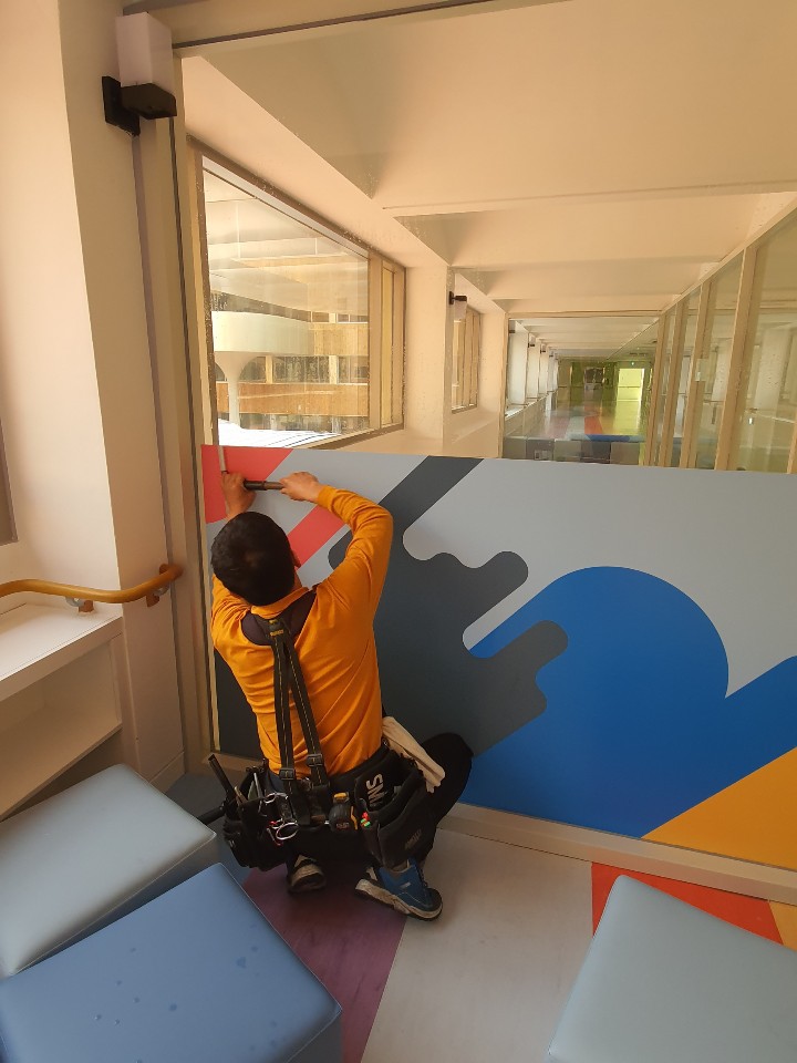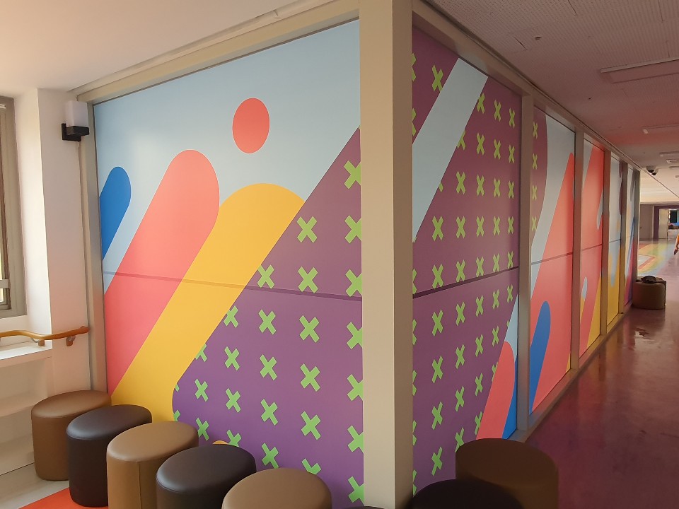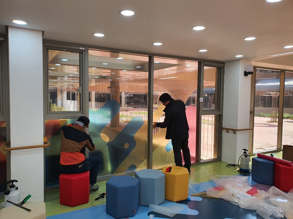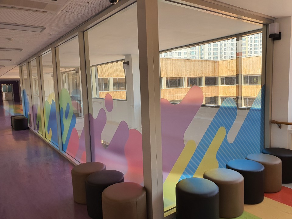 강서구에 위치한 서진학교에 직접 패턴을 디자인해서 프린트시트지를 제작, 시공하였습니다.