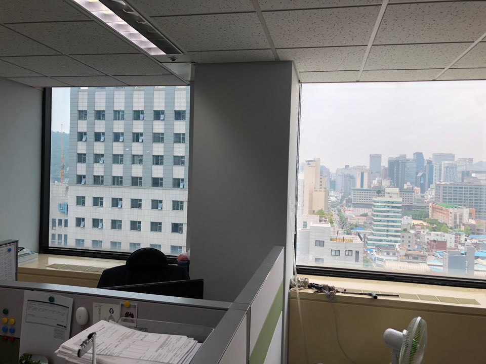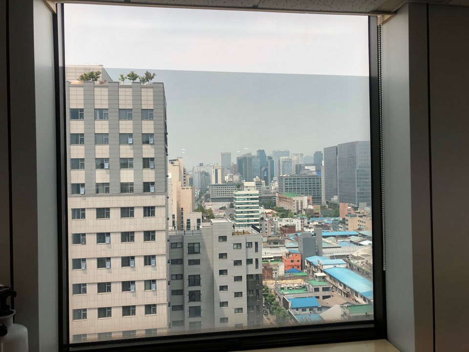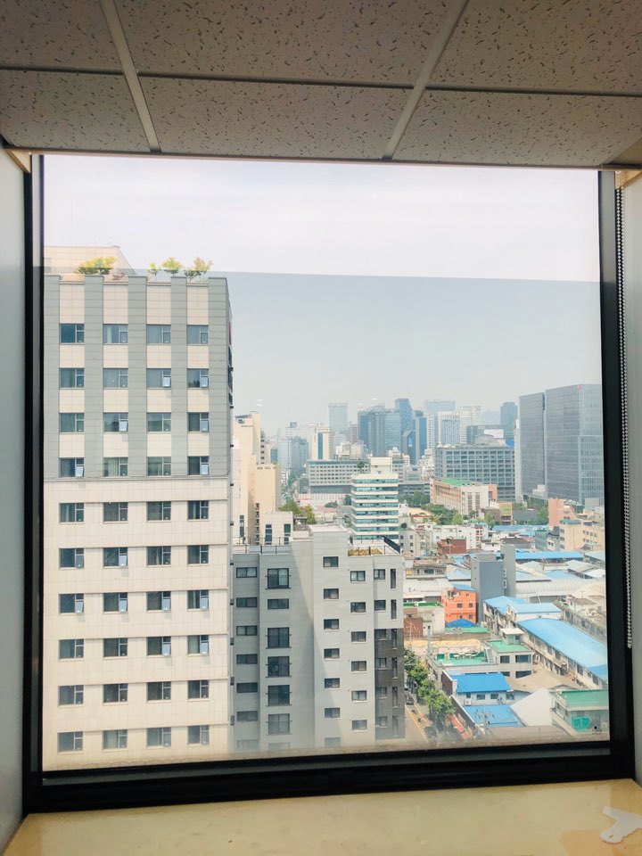 오히려 선명한 뷰를 누릴 수있는 작업임을 창밖의 하늘색의 차이를 보시면