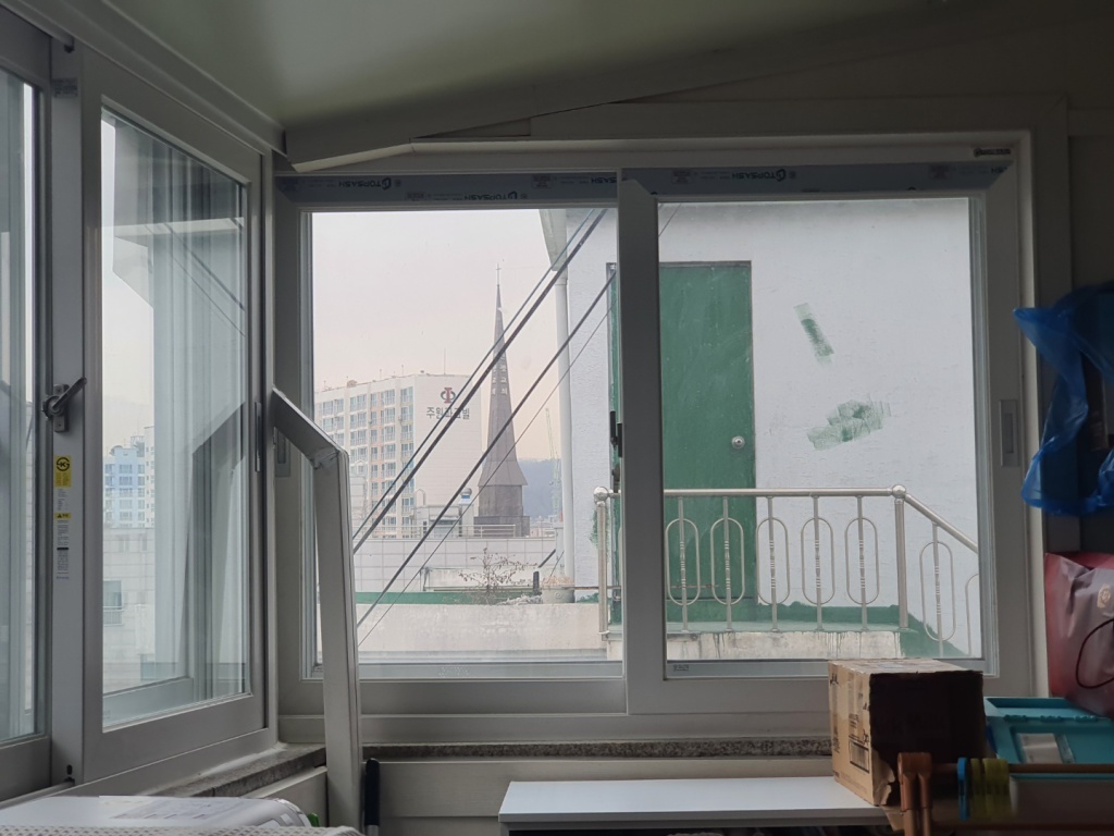 안쪽 유리창은 좀더 어두운 밝기를 요청하셨기에 밝기가 어두운 bk05필름으로 작업을 진행했고