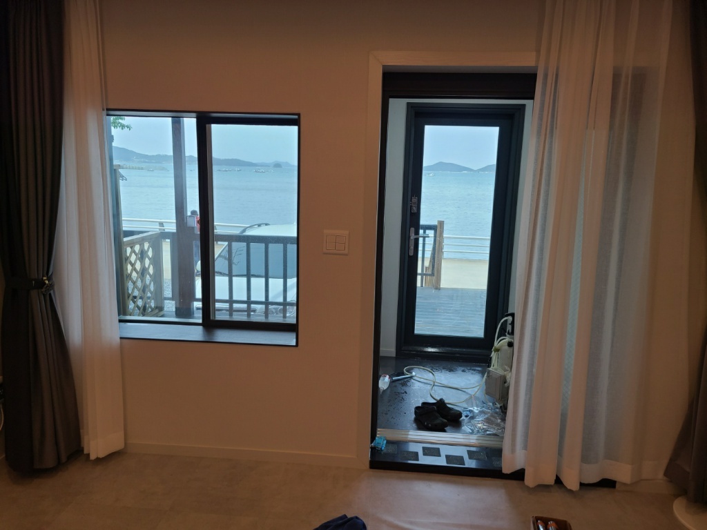안면도에 위치한 펜션의 외부시선 차단효과 및 단열효과를 위해